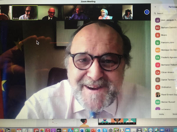 At the occassion of the Portugese Presidency of the European Council in the 1st semester of 2021 and for reason of sanitary measures of the Belgian government, F.U.E.C.H. organized a visio conference with the Portugese Ambassador in Belgium, H.E. Rui Manupella Tereno and his Honorary Consul of Portugal in Flanders, Mr. Bruno Joos de ter Beerst, on June 1, 2021. There was also present a representative of the portugese chamber of Commerce. H.E. Rui Manupella Tereno talked about the role of a Member State in the context of the Presidency of the European Council and the importance of the European Union in general. Mr. Bruno Joos de ter Beerst, who is an expert in Portuguese history, gave us a succinct presentation of Portugese history and its connections with Flanders in the Middle Ages. A few days after this visio conference Baron Haus, President of F.U.E.C.H., was received by the Portuguese Ambassador with, Mr. Bruno Joost de ter Beerst, Honorary Consul of Portugal for Flanders. At this occasion Baron Haus handed over a present to the two speakers to thank them for their brilliant presentations.